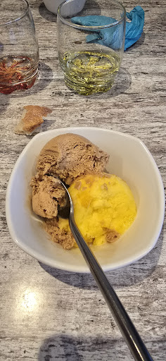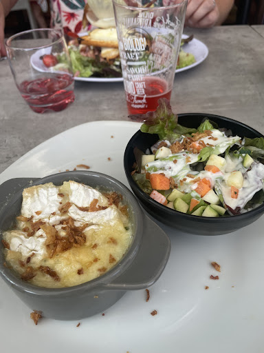 Read more2 pour le vin qui pour le prix est très correct, que dire nous sommes sur de la restauration touristique donc nous nous attendions pas à des merveilles mais quand même. Le détail 2 menus,en entrée un camenbert roti avec salade c'est de l'assemblage RAS quid des dés de tomates dans le fond du ramequin mais passons, l'autre entrée salade avec poulet pané et lardons +++++ (moins et plus revenu serait mieux) cela reste correct. Sur les plats aie aie aie un gratin de fruits de mer (enfin soupe de fruits de mer) l'inconvénient du congelé c'est qu'a la cuisson l'eau ressort. L'autre plat moules "marinières" apparemment c'est les meilleurs (dixit la serveuse) mais pour moi les pires que je n'ai jamais mangé les moules sont cuites (enfin celle qui le sont car 1/4 n'était même pas ouverte) dans une sorte de bouillon d'eau et de vin blanc et on rajoute de l'oignon cru émincé sur le dessus, pourquoi s'embêter à faire revenir des oignons échalotes mettre un peu de persil de fenouil et assaisonner alors que c'est des touristes en one shot. Dessert tiramisu fade à souhait et glace industriel sans commentaire. Dernière chose comme nous étions vers la cuisine (impossible de changer de table malgré notre demande sur une autre table plus proche de l'extérieur qui s'était libérée alors que celle ci est restée vide jusqu'à la fin) la brioche pour le dessert ca se fait dans une poêle avec du beurre et non au micro ondes... Enfin c'est certainement meilleur comme ça c'est vous les...