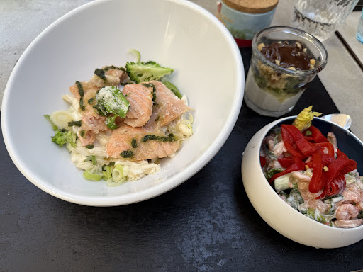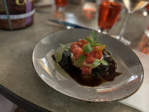 Des idées dans les plats. Dommage mon risotto était juste tiède, et pas assez cuit. ( derrière moi le monsieur d’une autre table ne l’a pas mangé non plus.) malgré ma demande de l’avoir plus cuit, il est revenu de même juste noyé dans la sauce. Très bonne cuisson de mon poisson. Les desserts dont la brioche servie avec une quenelle de glace mériterait un travail de déco...