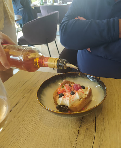 Read moreDes mois que nous souhaitions réserver une table dans ce restaurant. Chose faite samedi 1er février, une carte très prometteuse qui donne envie. En entrées : couteaux yuzu plutôt bon mais beaucoup de coquilles, assez désagréable sous la dent / carpaccio de st jacques vinaigrette mangue insipide. En plats : st jacques snakées polenta châtaignes, finalement accompagnées d'un risotto bien trop crémeux, pas pu terminer l'assiette, une première pour moi / filet de bar aux épinards ail des ours, servis sans épinards mais avec ce même risotto indigeste / carpaccio d'ananas à la crème brûlée, moyen pour l'ananas pas mur, sans saveur en revanche la crème brûlée très bonne mais pas assez en quantité / croustillant chocolat commandé mais plus disponible... Donc pavlova servie avec une boule de glace vanille, un coulis du commerce ?! et de pomme golden ! Bref déception totale pour 40€ le menu, c'est trop cher payé. Rien a dire sur le service, effectué je suppose par le gérant, qui s'est excusé des désagréments en se justifiant par une défaillance du cuisinier ... en place depuis un mois et qui se cherche ... Doit-on redonner une chance dans quelques mois, on...