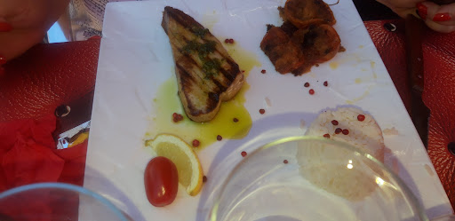 22h10 Arrivée des entrées mais pas du menu enfant : tartare de saumon insipide avec sa sauce mayo ketchup et eau, franchement difficilement mangeable, la ciboulette par contre était bonne. Foie gras quelconque.