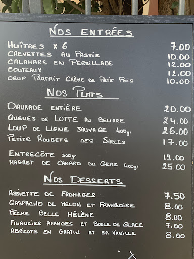 Note that th is a fish restaurant so apart from desserts there is not lot of anything else. But fish cooked extremely well - moist, delicious. We had crevettes flambéed in pastis, sole meunière and line caught whole fish - daurade I think. Busy but great staff and the kept up with the demands. Check out the humorous art on the wall. With wine it was €30 each. Would we go...