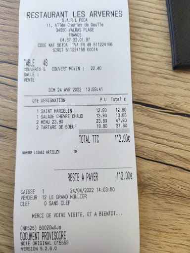 Read moreSorry... no photo , I was so shocked I didn't think about taking one. I paid nearly 29€ for the house speciality L'assiette des Arvernes. It comprised of a fish risotto (stone cold and quite sweet like rice pudding), 3 pieces of cod (the size of a large bottle top), 3 gambas (these were hot, cooked and ok) and one crustacean which didn't have clews but was supposed to be a langoustine - this was cold and undercooked. By the head, the meat was translucent with a grey tinge. I sent it back. The waiter returned with exactly the same plate of food which had obviously been microwaved. Disgusting!!! I got no discount and a nonchalant 'sorry' when paying. Never going back!! Don't waste your money!!!