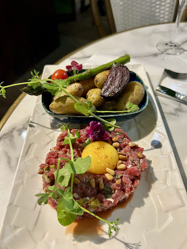 Read moreRéservation surprise, faite par Honey pour diner le 1 aout 2024. Notre 1ère fois et pas la dernière. Alors là, quelle surprise à notre arrivée, (les premiers, j'ai pu faire de jolies photos du cadre tranquillement). C'est l'Eden, l'endroit parfait pour un diner en amoureux, ce qui était notre cas, ou en famille ou entre amis ou même seul. Resto outside, avec piscine, arbres, fleurs et brumisateurs, qui apportent la touche cosy à cet endroit. Quant au personnel, nous avons particulièrement bien accroché avec le manager Grégory...l'ange de l'Eden. Aux petits soins de A à Z. Le seul petit bémol, car je vais faire mon enquinineuse, pas de pain apporté et oubli de revenir nous proposer le vin, qui l'a été avant de nous apporter le plat, mais zappé par la suite (pas très grave en soit, nous avons bu un cocktail avant et comme on le sait tous...consommer avec modération). Nous avons choisi la côte de bœuf, avec frites, légumes maison et salade, sur les conseils de Grégory...nous y avons fait honneur jusqu'au bout du bout, tout juste si nous n'avons pas rongé l'os. En dessert, j'ai choisi la soupe fraise menthe, servi avec sorbet au citron...très rafraichissant et mon époux a choisi le fondant chocolat servi avec chantilly maison et glace vanille maison (pas sure) mais délicieuse (bah oui j'ai goûté). Pour résumé, je conseille vivement. Nous savons que nous y retournerons un midi pour changer et profiter de la piscine par la suite. Voilà chers lecteurs, je vous laisse composer le numéro pour vite réserver...