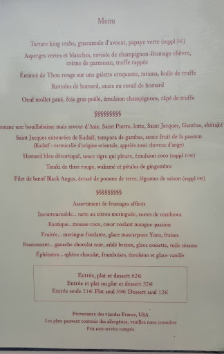 Der erste Eindruck, ein Restaurant, das mit viel Leidenschaft geführt und die Mission „hervorragendes Essen“ gelebt wird. Das gebotene Menü ist jeden Cent wert. Wer als ersten Gang das Carpaccio aus Jakobsmuscheln bestellt, darf sich auf ein Geschmackskunstwerk freuen. Die Jakobsmuschel zergeht wie warme Butter auf der Zunge, unterlegt von einer leichten Säure mit der salzigen Würze des Kaviers, der sich in seiner Konsistenz mit der Muschel im wohligen Einklang findet. Als Hauptgang der Thunfisch Tatiki ergänzt diese Vorspeise perfekt. Der Thunfisch leicht gebraten gibt am Rand die Festigkeit, die bis zur roten Mitte hin als perfekte Komposition am Gaumen schmilzt. Gemeinsam mit dem eingelegtem Ingwer und den frischen Karottenstreifen wirkt das Gericht erfrischend und bietet eine Explosion an Verschiedenen Konsistenzen. Um das ganze abzurunden wird Duftreis serviert, der seinem Namen alle Ehre macht. Die Nachspeise, so einfach und gleichzeitig Kreativ, gibt dem ganzen Menü noch den letzten Schliff. Während die Zitronentarte ihren Duft über das ganze Lokal verströmt, ist eine Schokolandenganche in einer Hülle aus dunkler Schokolade und Sesam mit geeister Schokomouse auch eine Sünde wert. Alles in allem ein gelungenes Menü welches den Gaumen und die Seele des Gastes zu verzücken vermag. Auch komme ich nicht umher die Freundlichkeit des Personals in das Scheinwerferlicht zu stellen. Trotz Sprachbarriere war die Verständigung auf Englisch, Französisch und Deutsch die reinste Freude für alle Seiten. Die gleiche Mühe unsererseits mit gebrochenem, fast nicht existentem Französisch zu kommunizieren kam auch vom gesamten Personal. Mein Fazit: Der Preis erscheint im ersten Moment hoch jedoch geht verlässt man das Lokal nicht nur satt sondern auch mit einem Lächeln...