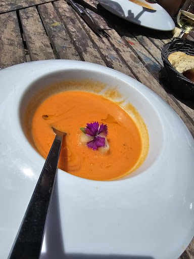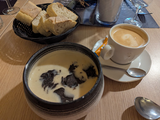 Read moreAvons soupé dans cet établissement recommandé par notre chambre d'hôtes. Très facile à trouver au centre du bourg, sa terrasse doit être bien agréable aux beaux jours. Quelques surprises: Le prix proposé sur la carte est supérieur de 25% à celui affiché à l'extérieur. Explication du serveur "j'ai oublié de le changer "! La carte des vins comporte plus de propositions barrées que de vins disponibles....que le serveur ne connaît pas! Un carlin vient gentiment saluer les clients...Le serveur nous indique qu'il appartient à son père!. Ces petis désagréments pourraient facilement être gommés. Reste heureusement une salle avec un feu de cheminée, des bougies sur les tables pour une ambiance cosy. Reste un menu correct avec notamment un poisson à la cuisson idéale et son accompagnement gouteux et bien équilibré. Si vous n'aimez pas le dessert du jour. . Il vous sera proposé des glaces industrielles...dommage! Reste qu'on ne peut qu'encourager ceux qui veulent faire vivre, en toutes saisons, un restaurant dans un village de moins de 300 habitants. Reste à féliciter un commercant qui expose les oeuvres de Pascal Migeon, un des 2 sculpteurs locaux. Belle solidarité. Reste à rendre visite à ce dernier dans son atelier situé à 2 pas. Reste à venir et revenir pour participer à la vie de ce village qui ne manque...