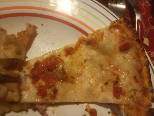 La pâte est extra fine au point où tout tombe quand vous prenez une part, pâte pas du tout cuite.