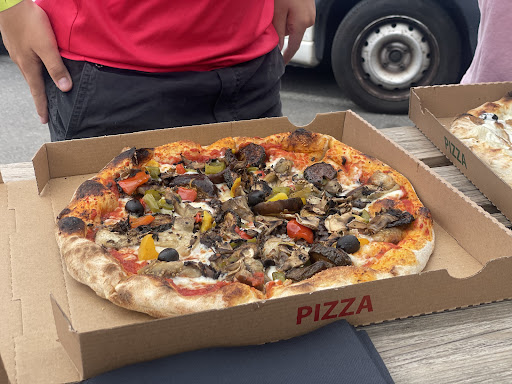 Read moreHeerlijk gegeten! Bij bestellen meteen advies dat we met 2 volwassenen en 3 kinderen van 9, 7 en 7 jaar waarschijnlijk geen 5 pizza’s hoefde te bestellen. Wij hadden ruim voldoende met 3. Desserts namen we mee voor later op de camping. Ook die zijn royaal qua hoeveelheid. Eigenaar gaf bij binnenkomst overigens tevens meteen aan dat hij geen restaurant is maar voor afhaal. Dus faciliteiten als toilet niet mogelijk. Geen probleem, dat wisten we. Wel drankjes te koop. Wat ons betreft enkel puntje ter verbetering: de picknickbankjes die buiten staan. Deze zijn wat laag en wiebelig. Maar het is een afhaal, dus wat ons betreft al service dat er een mogelijkheid is om ter plaatse je pizza te...