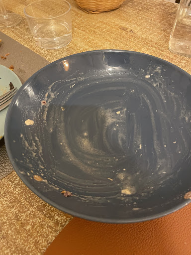 The food was outstanding. Fresh and clean gazpacho with a tiny hint of spice. A generous entree serving of tuna tataki. A delicate cod gratin on black rice with grilled vegetables, delicious. All good.