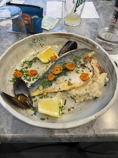 Read moreBonjour, Nous sommes venues a trois dans ce restaurant. Nous sommes de Béziers et avons profité d'une matinée plage pour rester manger. On sait que nous sommes en bord de plage en période touristique et qu'il ne faut pas être difficile ( on est plutôt bon publique)..mais vraiment je suis désolé mais c'était pas bon... Duo gambas seiche... Gambas ressemble plus à des crevettes et seiche trop cuite, le riz sauce soja on aurait dit qu'il avait été coupé a l'eau..... Mon père a pris un tartare de boeuf....il était coupé au couteau...sauf qu' on était plus sur des gros morceaux de viande coupé grossièrement...certes... Mais d'autant plus quand on est sur tartare au couteau la viande doit être bonne...ce qui n'était vraiment pas le cas... Filet de saint pierre sec..... Et le café gourmand décongeler... Alors peut être qu'on est tombé sur le jour où le chef était malade ou autre mais je ne le conseille pas. On a fait un autre restaurant une semaine avant qui était un peu moins cher et bon donc on peut espérer mieux a Valras en cette période! Je me suis laissée séduire par le nom du restaurant et la déco assez jolie. Quand on a demandé à mon père si c'était bon au moment de payer. Il a répondu non et on lui a répondu c'est parfait... Bon on n'a pas...
