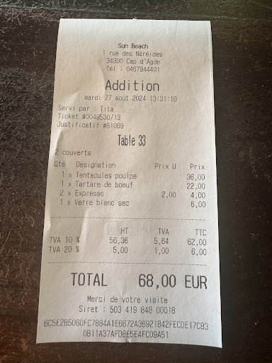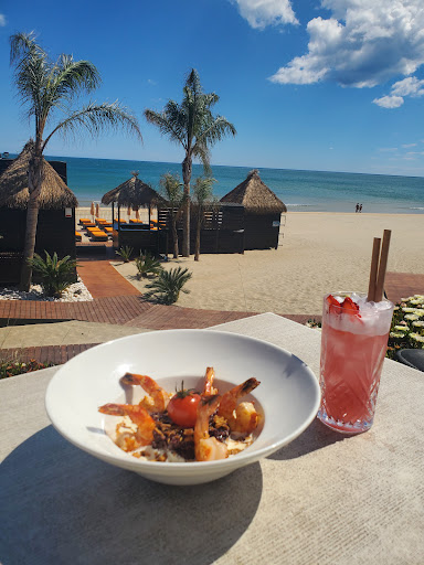 Set overlooking the beach and the azure waters of the Med, an excellent location. Food has gone downhill, however. Moules marinere was particularly disappointing with almost no liquid to accompany the muscles and what there was tasted thin and salty (my companion described it as ‘dishwasher’). The duck steak was overcooked and tough. The poke bowl was very good. Service was beyond a joke. Took 45 minutes to get our initial drinks. They were sitting on the bar for half of that time and the waiter told us it “wasn’t his job” to deliver them to our table. In the end we got them ourselves. The food took an hour, second round of drinks and cold pudding order took 40 minutes. When one of the party ordered his food, he was told to use “magic word”. One decent and apologetic waiter but otherwise entirely useless. The wine - which we waited so long to drink - was even tidied up before the bottle...