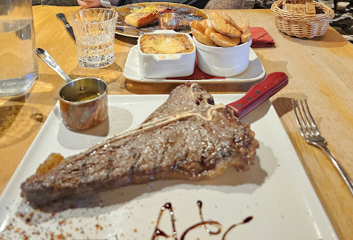 Read moreBonsoir. Nous sommes venus une première fois en 2014 et nous nous sommes régalés de ce bel endroit de la viande,des frites de vrais frites...faites maison pas des chips. Quel déception huit plus tard de voir le niveau de restauration que vous nous avez présentez. Comment peux t'on lire sur votre carte frites maison,et que vous nous présentiez aussi simplement,quelques pommes de terres coupé en forme de chips tout ça accompagné de flancs de légumes . Une grosse déception,le service fut très decevant la personne très peu a l'écoute une simple demande de moutarde,il a fallut se lever pour que l'on puisse nous l'amener. Pénurie de moutarde me dit la patronne on va faire le nécessaire pour vous l'apporter,vous rigolez Madame un restaurant qui présente une carte avec que des grillades,et vous me dites pas de moutarde arrêté de vous moquer des gens,et faite le service pour lequel on paie la note.... Une panière de pain rien de plus normal dans notre pays de pouvoir manger du pain lorsque l'on nous amène le plat,et bien non tout est sur demande rien ne nous a été amené de plein grès ou sinon en fonction du plat.. La bouteille de vin amenée alors que le plat de viande est déjà servi à table...bref pour ma part il faut revenir à des valeurs traditionnelles plus terre à terre. Nous sommes resortis de ce restaurant avec le sentiment d'une faim non apaisée,mais pas pour le porte feuille, vraiment on ne peut pas dire que l'assiette qui nous a été présenté mérité le prix qui nous a été demandé. Un conseil passé votre chemin si tenté est d'aller à l'Auberge du château,il fut un temps le plaisir de la table faisait parti de l'établissement,pas...