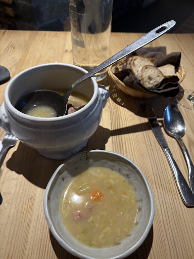 Read moreL'Authentique combines the best features of a well-run modern restaurant with a rustic mountain charm. We were made to feel warm and welcome from the moment we arrived, including a complimentary bowl of farmhouse soup and a big basket of really good bread. Our waitress was dealing with lots of tables on a busy night but was cheerful, professional and attentive throughout. The food was terrific, good value and beautifully presented. The views when you stroll to and from the restaurant capped a perfect romantic evening. Merci bien...