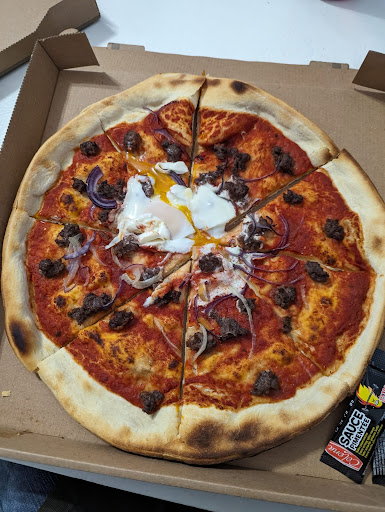 Nous avons commandé 3 pizza à 19h04 il nous dit que se sera prêt dans 20min jusque là tout va bien, et puis nous avons récupéré des pizza pas assez cuite(qui dit farine pas cuite, dit indigeste) très fade, ingrédients bas de gamme et sa se ressent! Je vous laisse admirer ma Pizza buffalo sans fromage et sans champignons avec supplément oignons... Je me demande encore qu'est ce qu'il lui a prit 20min dans tout ça ? A fuir a part si vous voulez un bon mal de ventre le lendemain matin...