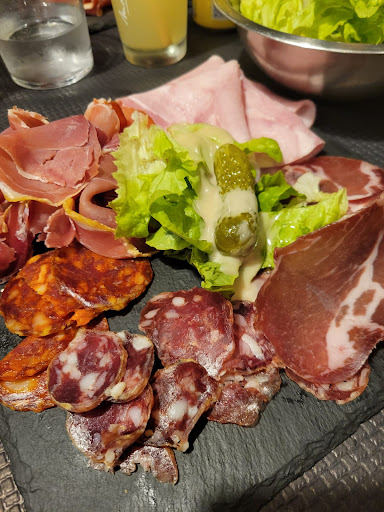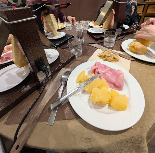 🧀 Nous avons choisi la raclette au poivre : fromage excellent, pommes de terre servies à volonté, et une belle assiette de charcuterie de qualité. L’appareil à raclette permet de faire fondre le fromage comme il faut, et de le faire couler directement sur les pommes de terre – un vrai plaisir dont ma conjointe rêvait depuis longtemps.