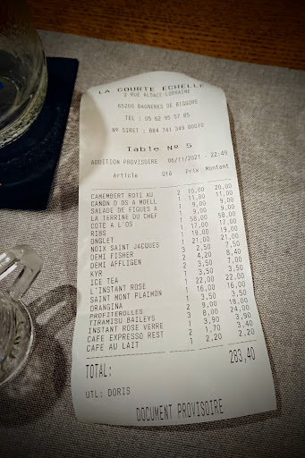 Read moreAu passage d'une rue à la recherche d'un restaurant à Bagnères, nous nous sommes arrêtées à la Courte Échelle d'abord parce que le nom nous a fait sourire, et que l'ambiance à l'intérieur me rappelait un vieux bistro de mon enfance. Et quelle judicieuse décision !! Nous nous sommes régalées. Le service était aux petits oignons : petits feuilletés apéritif, lancement des plats à la faim de nos boissons sans avoir à demander, vérification que tout se passe bien, retrait du pain, du sel et du poivre à la fin du repas... Ça peut paraître bête mais tous ces petits gestes font entre autres partis d'un très bon service, sans compter l'accueil et le sourire de toute l'équipe qui vous fait vraiment vous sentir bien. Et alors, parlons enfin du repas lui même ! Cela faisait longtemps que je n'avais pas vu une pièce de boeuf de cette qualité, et un beurre maître d'hôtel maison et conséquent (il n'est pas servi comme sur la photo, j'ai pensé à prendre une photo après avoir commencé à l'étaler). Les origines des viandes sont notés, commentés et on a été ravies de savoir que le lien avec des producteurs locaux était valorisé. Nous n'avions plus faim pour le dessert, mais un café gourmand ne se refuse pas, et j'ai été étonnée par la crème brûlée à la coco qui m'a finalement ravie !