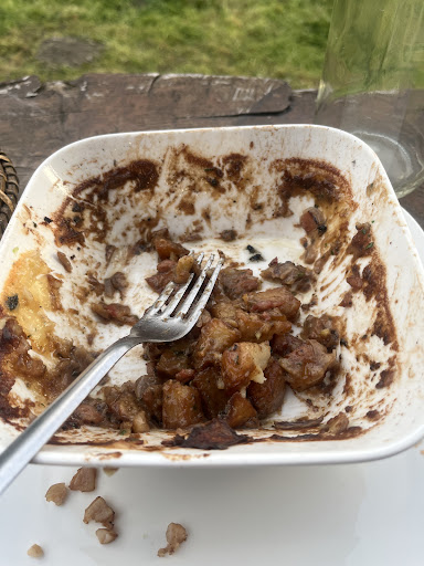 En commençant à manger la tartiflette, j’ai remarqué quelque chose de noir dans mon assiette. Je n’y ai pas prêté trop d’attention et j’ai continué à manger.