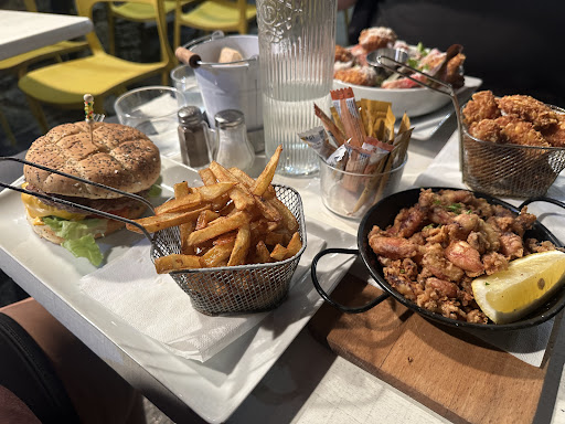 Read moreHemos ido cuatro personas a cenar. Si bien el ambiente es agradable, con música de fondo y el trato del personal no es malo, el problema ha sido la comida. Hemos pedido las cuatro hamburguesas de la carta (una media de 15-16 euros cada una) y agua para beber (gratis). Ninguno de los cuatro hemos salido contentos con la comida. El pan se rompía o estaba chicloso, la carne no sabía literalmente a nada, una rodaja de tomate por aqui, una loncha de queso sin fundir por allá. Las patatas fritas estaban bien de sabor pero habían estado más de lo necesario en la freidora. Para añadir, entre las salsas había sobres de mayonesa caducados. Resumiendo, hamburguesas como las que se haría un adolescente con productos del mercadona. Personalmente no lo recomendaría habiendo otras...