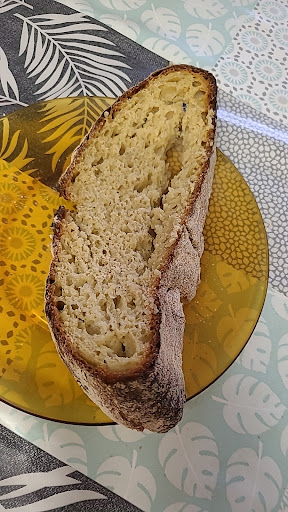 Un pain bio qui est produit avec de la matière première de qualité. Un service qui se veut simple à échelle humaine et bienveillant. J'ai goûté le pain multi graines, le pain aux graines de courge et le pain aux pois chiches. Les prix sont élevés, 10 euros de moyenne, pour des pains qui ne se conservent pas plus d'une journée. Je déconseille très certainement le pain aux pois chiches qui s'est décomposé dès le lendemain. J'ai exprimé mon étonnement sur la tenue de ce dernier et n'ai reçu en retour que peu d'intérêt et envie d'améliorer leur recette. A mon sens, Il vaut mieux peu de de choix et produire bien que vouloir produire tout ce que vous proposez et qu'au final la qualité en pâtisse. Bonne...