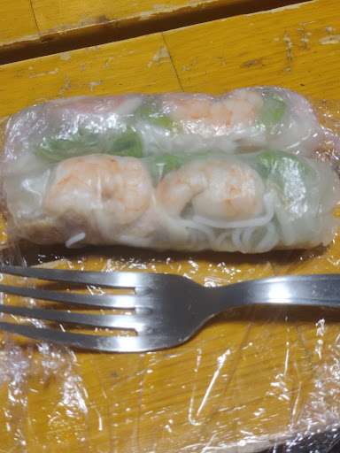 Pour le prix s'est du vol j aurai honte àvotre place un rouleau de printemps coûte plus de 2 € ils sont minuscule pour vous donner une idée en règle générale je prends deux ou quatre rouleaux de printemps normaux là j'ai mangé les 8. La photo n' est pas très explicite mais la taille est légèrement au dessus d' un nem 😔 Pareil pour le bun bo portion minuscule l'équivalent d'une poignée. Nous étions plusieurs à commander chez vous les collègues qui ont pris d'autres plats ont été déçu également . Même pas un geste pour une grande commande et en prime l oubli des baguettes ah oui pardon faut manger...