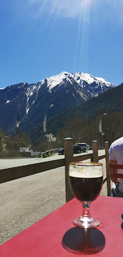We were seven and quickly served. A table was arranged for us with water, cutlery and napkins. Menu us not large but sufficient. Fantastic day and view of the mountains. Food was great. For one plat du jour, one trout, one beer, one rosé, one pavlova, 2 coffee we paid 52€. Highly recommended is the pavlova that was beautiful, delicious and not too sweet. Toilets are a big dirty and dark but there are public toilets by the...