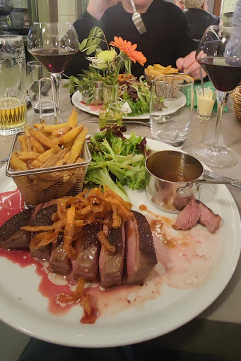 Read morePremiére pour trois convives en ce début février 2023 et assez bonne surprise. Tout d'abord la salle est agréable, spacieuse et l'ambiance y est plutôt bonne. De oa place devant pour se stationner... Personnel aimable, accueillant et trés professionnel. Valorisation de leurs produits et présentation des vins appréciable. La carte est simple pas forcement trés variée mais les amateurs de viandes et poissons ne sont pas oubliés. Magret de canard très généreux bien que l'on était plusieurs a avoir souligné le manque de tendresse, le goût y était tout de même et le prix correct... Les frites un peu décevante de l'avis de certains... pas assez croustillantes, gourmandes... Service rapide et appréciable. Une table à laquelle nous reviendrons...