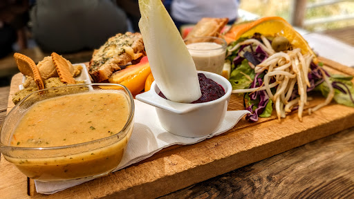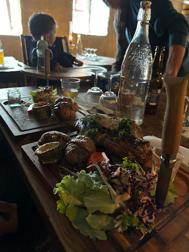 Le tout est servi avec une sélection de pains rustiques et de fromages locaux, parfaits pour éponger les sauces riches et délicieuses qui accompagnent les plats. Le cadre intérieur, avec ses grandes tables en bois et la lumière douce qui filtre par les petites fenêtres, vous plonge dans une nostalgie bienfaisante. On se croirait transporté dans une autre époque, où la simplicité et la convivialité primaient.