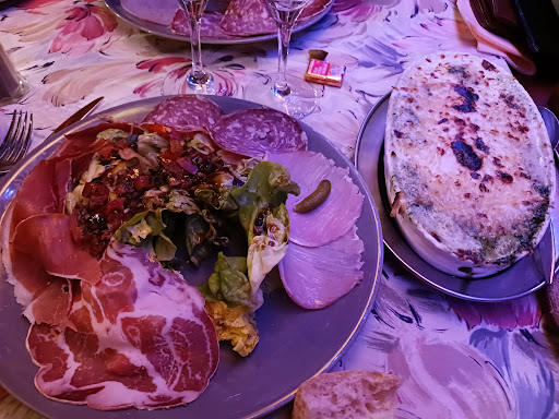 Je rebondis sur l'avis déposé par mon compagnon. En vacances en Ubaye, nous souhaitions manger local et montagnard. Parfait nous nous sommes dis quand nous avons vu le restaurant le Piolet qui s'affiche comme montagnard, aux saveurs du terroir et authentique. L'accueil est sympathique en 1er abord et la serveuse nous conseille fortement la spécialité : le gratin aux ravioles aux morilles. Les plats sont servis très voire trop rapidement, 2 minutes pour un gratin ! Je n'ai jamais vu ça !