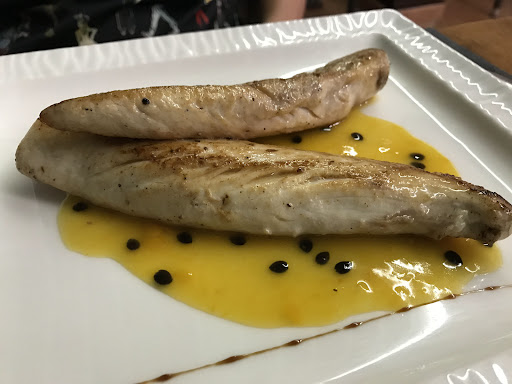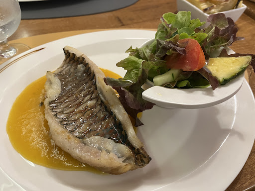 By far, the best meal we ate while in all of Guadeloupe. From start to finish, our tastebuds were rewarded. We started with Rillettes de poissons caraïbes maison à la moutarde à l'ancienne and Emincé de chatrou, huile d'olive, ail et persil. I took the waiter's recommendation and ordered the Tataki de thazard,émulsion au wasabi, which was cooked to perfection, slightly tartare, and the wasabi was like mousse. TO top it off, the dessert is something I will never forget: Soufflé glacé au rhum et raisins. I will dream of that dessert forever more. Do make reservations if you'd like to sit...