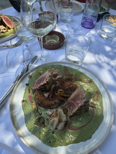 Un excellent restaurant de poissons mais pas que ... Sébastien, le propriétaire, est patron-pêcheur et spécialisé dans la pêche au thon et à l'espadon. Il est présent pendant le service tout comme le chef et ils vous font partager leur passion. Les produits sont locaux, hyper frais et de qualité, les circuits courts sont privilégiés, résultat : les plats sont finement élaborés et parfaitement cuisinés. Le repas a été un régal de l'entrée au dessert : le ceviche était merveilleusement assaisonné, les panisses croustillantes et légères, les rillettes de poisson (faites maison bien sûr) crémeuses et généreuses. Pour les plats, la dorade et l'espadon étaient délicieux, les accompagnements sont soignés tant sur les goûts que sur les associations. La fraise poêlée en dessert était sompteuse, douce et parfumée avec une touche de rhubarbe caramélisée. Mention spéciale pour les glaces et sorbets faits maison par Mme, plein fruit et du goût, du goût, du goût !!! Une adresse de grande...