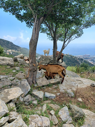 Read moreTrès atypique. Au fin fond de la route, suivez les indications pour le dernier kilomètre en chemin de terre pour trouver cette bergerie en plein maquis. Attention, il vaut mieux y aller en 4x4, sinon les bas de caisse ne passeront pas sur le chemin caillouteux avec de nombreuses ornières et relativement pentu. A défaut appelez le patron qui viendra vous chercher en bas du chemin ou dans le centre du village. Arrivés en haut, vous serez accueillis par les ânes. Puis installés sur une grande table en bois, vous admirerez le splendide point de vue sur Bastia (et même d'avantage à la nuit tombée). Menu unique à 25€ tout compris 2 entrées, plat, fromage, dessert et boissons (eau et vin). Très copieux, produits corses et cuisine maison. On quitte le restaurant rassasié et enchanté par cette trouvaille hors du temps et la convivialité des restaurateurs renforce cette impression. Enfin, la grande table permet de rapidement discuter et sympathiser avec les personnes de la tablée : touristes comme nous ou locaux... Merci d'ailleurs au jeune couple de parisiens rencontré en bas du chemin de terre et qui nous ont servi de taxi à l'aller et au retour pour le dernier kilomètre 😉. Vaut largement le detour pour un...