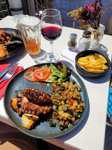 Read morePour 2 personnes 2 plats à 28,50€ chacun mix 4 poissons et tagliata de bœuf 1 heure pour avoir le plat Un poisson pas cuit inmangeable et le bœuf c est une demi entrecôte coupée bien grasse (ne ressemblant pas à la photo du menu)accompagnée de frites Pour les poissons accompagnés d une ratatouille en boîte et sauce béarnaise en bocal Après avoir informé gentiment la serveuse qu un poisson était rose pas cuit je n ai eu aucun mot de sa part en retour (ai peut être un problème auditif) Nous avons commandé une banana split et une coupe amarena en dessert Au bout d un certain temps nous avons vu la serveuse quitter le restaurant et revenir 15 mn après avec 2 bananes dans les mains ce devait être pour nous Une fois la banana split servi la serveuse avait oublié l autre dessert (nouvelle attente) La patronne aimable à la commande elle a disparu après le service des plats Franchement pour une addition de 88€ Restaurant à éviter mais la terrasse vue petit...