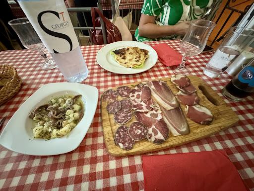 The dishes were certainly unique. The marinated anchovies with chickpeas and potatoes were flavorful, though the raw garlic was overpowering for our taste. The ciambelle with cheese - a warm, thin pancake-like dish filled with gooey melted cheese - was a definite highlight.