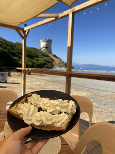 Nous sommes venus pour manger le midi avec notre fils de 2 ans et demi et nous avons été agréablement surpris du cadre du lieu . Un coin pour enfant est proposé avec des jeux.... Nous avons apprécié notre planche mixte composée de fromages Corse et de charcuterie un vrai délice . Le thé glacé maison est très bon et le café gourmand un vrai délice avec des desserts faits maison Bon rapport qualité prix et l'accueil est très chaleureux. Je vous le conseil si vous souhaitez manger à 10min de Nonza. Petit plus parking face à la mer...