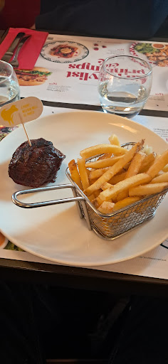 Nous avons commandé un apéritif qui était discutable. Un kir qui n'était pas très bon, servis dans un verre de ricard. Pour les plats principaux. Nous ne demandons pas du Paul Bocuse, mais des frites bien cuites ne seraient pas de refus. Les cuissons n'étaient pas respecté, un steak saignant pas saignant, et un steak à point bien cuit. Pas étonnant quand on voit que vous enflammez la viande sur le barbecue comme Jeanne d'Arc. Parlons des quantités, il m'a fallu sortir la loupe pour trouver un pavé de Rumsteak ! Ils n'ont pas du remarquer que nous étions adulte, vu les tailles des steak hachés, pas digne d'un happy meal. Ce n'est peut-être pas la guerre, mais ils ont tout de même pillés mon livret A, 131 € !!! Pour cinq personnes certes, mais avec des quantités dignes d'un pays en guerre, heureusement que nous avons bénéficier d'un geste commercial de 15€.