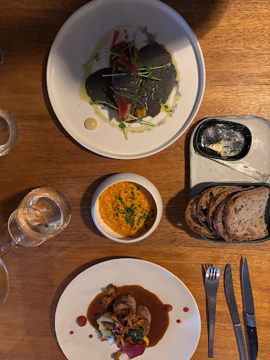 We were greeted by what turned out to be one of the two servers for the entire restaurant (it seats at least 40). No host(ess). We got seated by her pointing to a small dining room with 3 tables for 2 and her saying take the first table. Ok fine no problem. Then, and I’m not exaggerating here, we sat for 25 minutes. Nothing, no water, no acknowledgement. If you are asking yourself, why didn’t they just get up and leave, yes, I am asking myself the same thing. They finally came to take our order and the vibe was just one of I don’t care.