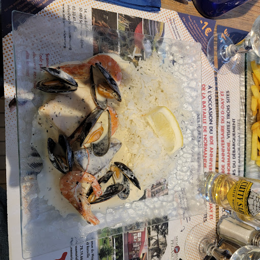 Restaurant catastrophe arrivée à 19h15 départ 20h20 alors que nous sommes arrivés à l'ouverture deuxième table pour un menu soi-disant express dans un premier temps nous avons réclamé du ketchup pour les frites du menu enfant nous avons dû manger des frites tu petit décide de lui donner les nôtres chaude parce que celle-ci serait servi avec les moules le ketchup est arrivé 20 minutes après l'avoir demandé les fruits tu étais déjà mangé mais cela ne s'arrête pas là nos deux cassolette de Monceau Paris mon panier de fabuleuse frites industrielle en quantité Misérables 2 micros cassolette de moules digne d'une entrée ou d'un plat enfant la moitié des moules étaient vides l'autre moitié de très petit calibre est rempli de sable nous avons dû réclamer notre plat réclamer notre dessert et lorsque la crêpe est arrivé pour le petit celle-ci comporter une préparation à base de rhum ou de Grand Marnier sans que nous en soyons avertis par le serveur je ne recommande vivement pas cette adresse j'aurais pu commande tu mets faire part de mon mécontentement au serveur qui je l'espère aurait servi deux cassolette de moules en compensation ou fait un geste sur la facture toutefois comme lui avion préciser que nous souhaitions manger rapidement sur le pouce pour profiter du coucher de soleil à la pointe du Hoc ça m'arrivait trop tard bien entendu plus d'une heure entrée froide moules frites surgelées des crêpes en dessert de qui se moque-t-on du touriste ah oui je reprends mon avis car j'ai oublié en fait important nous nous trouvions à l'extérieur mais tous les clients d'intérieur au moment de notre départ était complètement fumé un problème en cuisine la moitié des clients sont sortis évidemment aucun...
