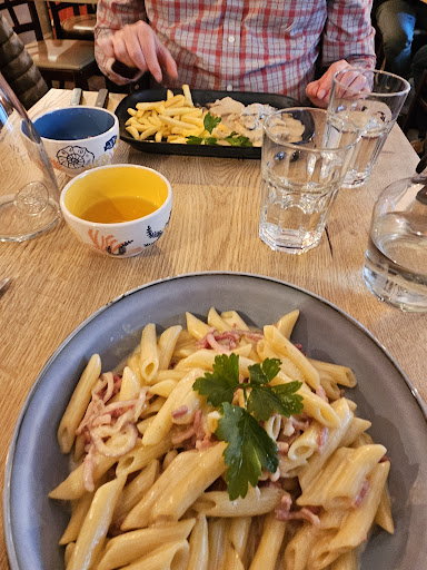 Read moreWhen they opened at 7PM, was able to be immediately seated. Super friendly staff with prompt order service. Our drinks were always filled and very quick bill payment at the counter. Ordered the pasta carbonara with onion and my partner ordered the pork filet with the Normand Sauce. It was a special. They had great cider available too. Dessert was probably one of the best creme brule dishes I've had in a very long time. Others around me were having pixxas and calzones and they all looked amazing. Will go back next time in town. Do recommend getting early as they were turning...
