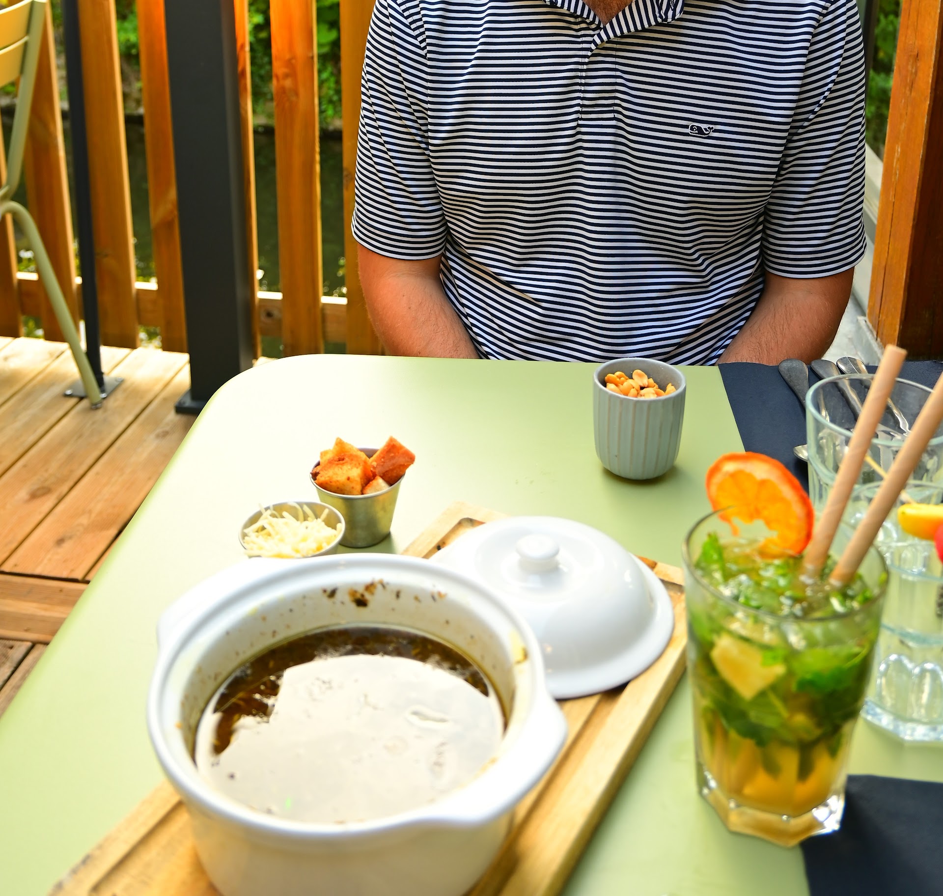 The service, as usual, is top notch! Our server, Clement, was so accommodating and nice. He was so funny and great! We came with 3 dogs and there were no issues 💖 they were even offered some water.