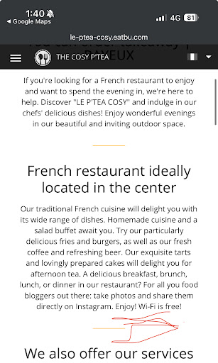 We had great expectations, because the menu looked really promising. We ordered a croque monsieur, an egg and cheese omelette and avocado toast. All of these dishes came wish side salads. The salads were crunchy (not in a good way: sand between my teeth), and soggy and had lemon pips in the guacamole. The omelette was burnt on the outside and runny on the inside. When I talked to the waiter about the salad issue the answer was defensive: this was not possible. A bit later his colleague/boss came by and denied the same thing. She said she washed the salad for three (!!) hours. She did give us a discount, but in the end we left hungry and with sand between our teeth. The only thing I would recommend...