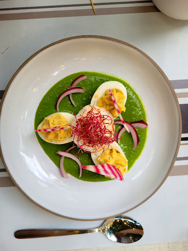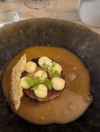 Read moreComme toujours & cette fois encore, l'appellation "Bistro-nomique" n'est pas usurpée. Même si l'ambiance décontractée (en tous cas non guindée), en terrasse, par un soleil radieux, nous inviterait à un certain relâchement voire un relâchement certain...la qualité, l'inventivité, les saveurs sont au rendez-vous dans l'assiette. William en chef d'orchestre en salle, Emilie en virtuose à son piano, en cuisine font qu'aucune fausse note ne vient troubler cette partition des papilles. Le serveur, nouveau venu dans l'équipe, pourrait déranger ce tableau idyllique ; même pas, tout le monde et chacun semble avoir trouvé son rythme, sa place et être au diapason, pour notre bonheur gustatif. Lancer une jolie adresse gastronomique est déjà un beau challenge, la hisser rapidement à un haut niveau n'est pas donné à tout le monde, la maintenir à ce même niveau et ce, depuis de nombreuses années maintenant ne peut relever du hasard mais plutôt d'une grande rigueur professionnelle. Je vous avais sincèrement souhaité "bon vent & bonne route!" à vos débuts, le message s'est brillamment traduit dans les...