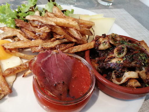 Read moreWe went here for dinner. You sit in a large hall at the back of the bar, with plastic chairs/ table, so doesn't look great. However the food was delicious. Only 4 things on the menu when we went (burger, combined plate, gourmet salad and something else) but the food was truly excellent. Desserts also fantastic (crepes, tiramisu, panna cotta). The young woman serving us was...