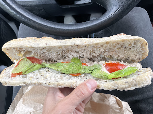 Had lunch here two days in a row Oct 11&12; my husband & I both had the tuna baguette sandwiches. Lots of tuna, egg, lettuce & tomato filling in the sandwiches. Citrus tarts the 1st day for dessert; gateau Basques & chocolate tart the 2nd day. All was delicious. Will probably have breakfast here on the 13th our last day in Saint-Palais. Nice & spacious covered patio seating...