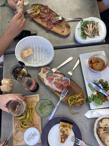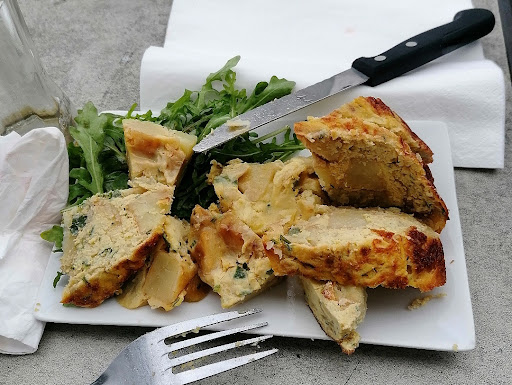 Même si on s'attend ici à une formule "bistrot" , le Café Ezkurra se référant au réputé restaurant Ithurria, on espérait beaucoup mieux! La terrasse, très quelconque, ne doit son charme qu'à la place du fronton. Quant à la carte, même si elle est réduite et simple pour cause de Covid, ce qu'elle propose est médiocre: la tortilla est épaisse, sèche et insipide, le gâteau basque (seule note de "fait maison" par Ithurria, avec la confiture de cerise!) est plus flan que basque! le tout servi sans soin: table douteuse, présentation sur des planches en bois fendues, pas de carafe d'eau malgré la chaleur, pas de serviettes... Malgré la gentillesse de l'une des serveuses, nous n'y retournerons pas , même pour goûter les tapas!! et nous régalerons plutôt d'une tortilla moelleuse de chez Zugasti à Ciboure, et du gâteau basque de chez Susperreguy à Ascain, plus traditionnels et surtout...
