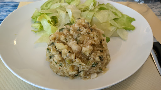PedĂ junto a mi pareja un plato mĂĄs postre y elegimos el plato del dĂa, un plato de bacalao con patata y lechuga, estaba riquĂsimo, de postre nos recomendaron pudin y otro (no recuerdo el nombre) y estaban muy buenos.