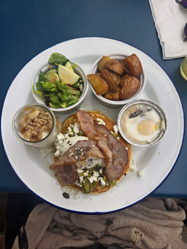 Read moreI wanted to check out this place for a coffee & vegan breakfast, but the waitress was working alone with just a few costumers and didn’t notice me for about 25 min. I also saw that besides a salad bowl there is nothing else that is vegan… I doubt the pancakes or the toast with avocado & feta would have been vegan. I really don’t understand why its is still so difficult for places to make decent vegan food. Especially because any vegan dish can be eaten by vegeterians or flexitarians or else. Nevertheless the place looked cute and the coffee as well....