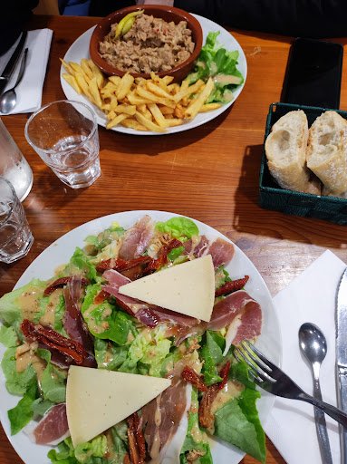 Read moreDommage c’est ma faute. Nous sommes à la ferme en montagne. pourquoi ai-je pris le merlu beaucoup trop cuit dans son jus de petit poids en boîte ? L’agneau qu’avait pris mon épouse etait très bon. Les chipions en entrée aussi. L’assiette de charcuterie : patté bon, saucisson sec bon, le chorizo très bon, jambon pas d’avis car en avions mangé à San Sébastien qui etait désolé, extraordinaire. Mon épouse a beaucoup aimé la brioche trempée dans dans du caramel beurre salé avec sa boule de glace avec chantilly. L’accueil est EXTREMEMENT agréable. Merci. Dommage que la gamme des vins aux verres ne soit pas plus développé. Pas de blanc et un rouge cabernet sauvignon à vous attaquer l’émail des dents. Attention, les couples d’amoureux, ne vous laissez pas mettre à côté de la porte d’entrée. Et pourtant je recommande. Lieux véridiquement campagnards et loin du tourisme et vrais. C’est ce que...