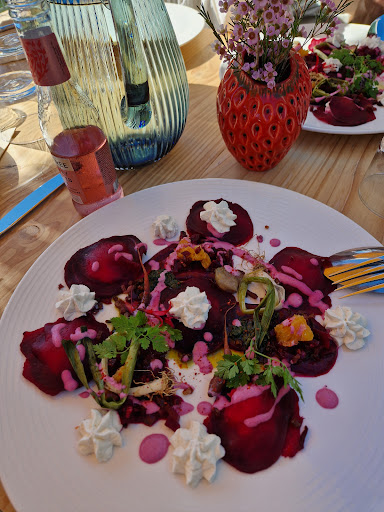 Read moreTrès bon restaurant à bien des égards. Commençons pas le petit « moins »: Réorganisez la carte : je viens dîner et la première page de la carte me présente les les en-cas du goûter ou les planches apéro… Bref dès l’arrivée je suis un peu perdu… Changez sa présentation: la planche à clip, c’est bien pour les bars de plage ou les collations du midi… faites nous un truc plus classe pour le soir ! Les plus maintenant: Ben, TOUT LE RESTE! À commencer par le service: dès l’arrivée , chaleureux, agréable, personnalisé… et tout du long, prévenant, disponible et souriant. Le cadre : charmant, de très bon goût, voir poétique avec les lumières se reflétant sur l’Uhabïa. Et la cuisine… 🤤, un régal. À la fois local, savoureux et inventif par l’introduction de fleurs et herbes qui viennent exploser le goût en bouche et apporter une dimension inattendue. Le dessert (macaron) peut concurrencer en saveur et présentation celui de votre confrère étoilé que j’ai mangé l’année dernière! Non vraiment rien à dire à part bravo et gardez le cap. A l’année...