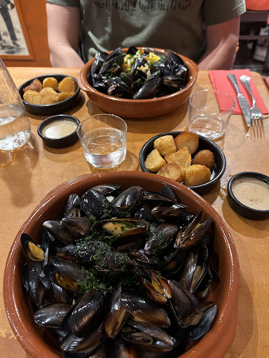 Read moreA fuir, si vous ne voulez pas ressortir de là en colère. 20 h ce samedi. Nous prenons une table pour deux et on nous installe à côté d'une table vide qui ne tarde pas à être occupée par un couple sympathique. On dirait qu'on est bien tombé, vu le monde qui afflue. 21 h, au moins ... Le couple à côté de nous attend son dessert, nous recevons enfin notre entrée. Très amusés, nous le prenons bien et plaisantons de bon coeur à ce détail. Petit problème, nous avons tous les deux une assiette de tapas alors que mon ami a commandé autre chose. La serveuse arrive à nous faire admettre que c'est pareil... 22 h, je crois ... le plat de résistance arrive enfin. Des gambas sois disant fraîches sans goût et un accompagnement froid. Je me plains. On accepte de changer mon assiette contre du merlu qui n'a pas plus de goût que les crevettes. Bref, je n'ai même pas fini mon plat. Mon ami, quant à lui se voit servir du merlu alors qu'il avait commandé une dorade 22h45 ... on va payer. Pas le moindre geste commercial, par contre, la préposée à la caisse nous fait bien comprendre qu'elle n'a rien à faire des clients insatisfaits (le ton ironique avec lequel elle nous a souhaité un bon séjour en pays basque, ne nous donne aucune envie de revenir dans ce piège à touristes.) Maintenant, il est minuit passée... Je suis encore sous le coup...