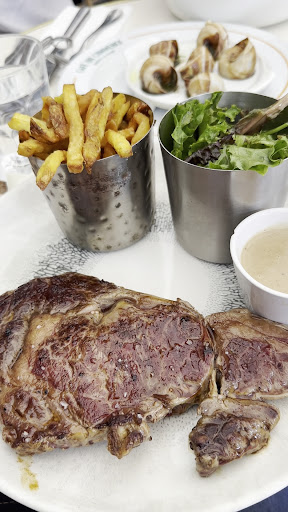 Our bill came to just under 105€ after the discount. We ordered the two steaks, two glasses of champagne, two beers and two glasses (28cl) of...