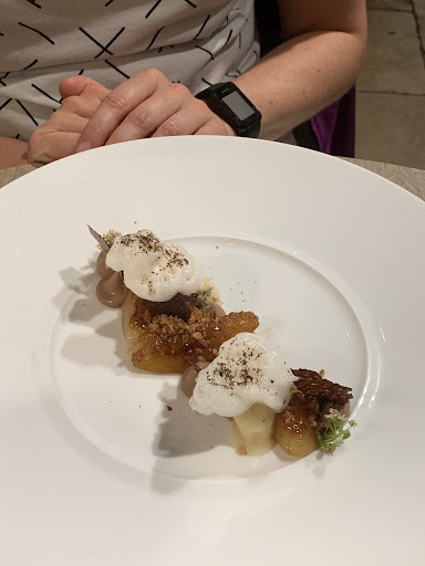 Read moreBeautiful setting for delicious food. We had the 120 euro menu and were not disappointed. I think we had 8 courses overall and each one was interesting, a work of art on the plate and a delight for the senses. I couldn't fault it at all. My only comment would be that they need to offer better steak knives, I saw that other tables, like us, struggled a little but that really is being picky. We went for a romantic meal for two and were not disappointed. No dress code either which for a Michelin star in a hot destination was welcomed. Thank you. Service was 10/10. Our bill was 300 for 2 x 120 evening meal menus, a bottle of...